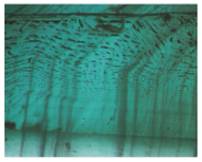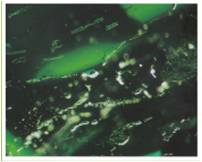 This inclusion is a result of de-vitrification of man-made blue glass which can be mistaken for natural inclusion