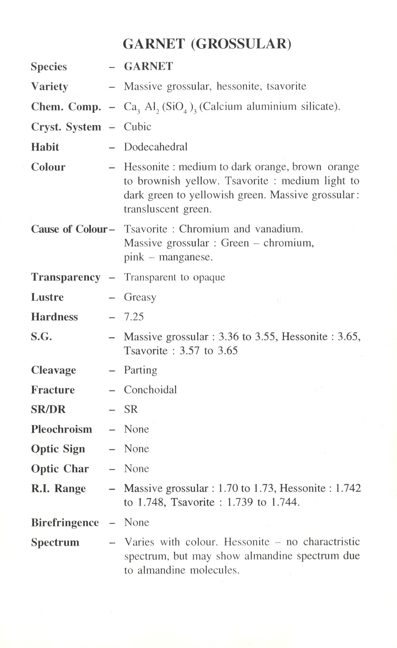 Chemical composition :- Calcium Aluminium Silicate Ca3Al2(SiO4)3