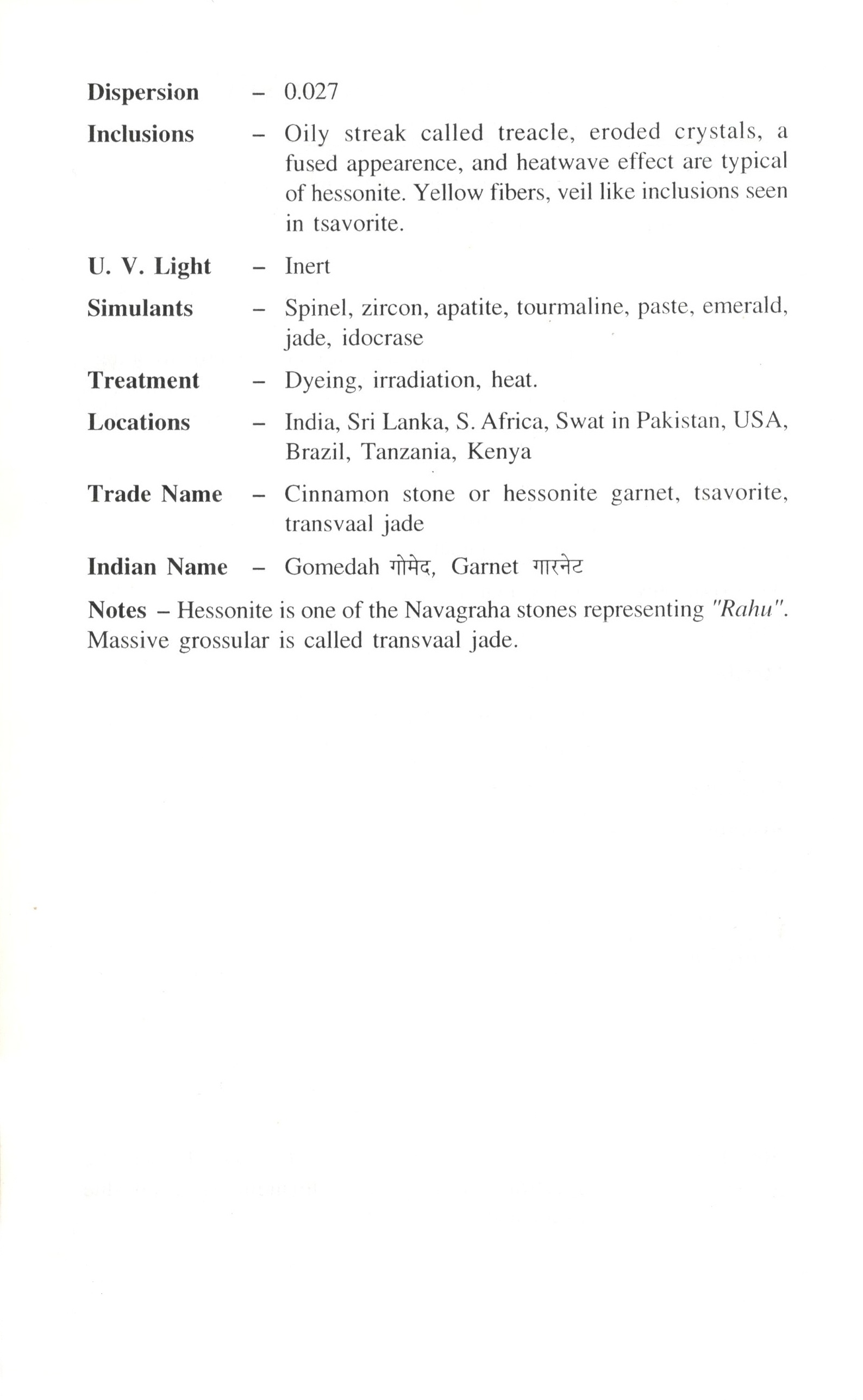 Hessonite Garnet Product Properties :-