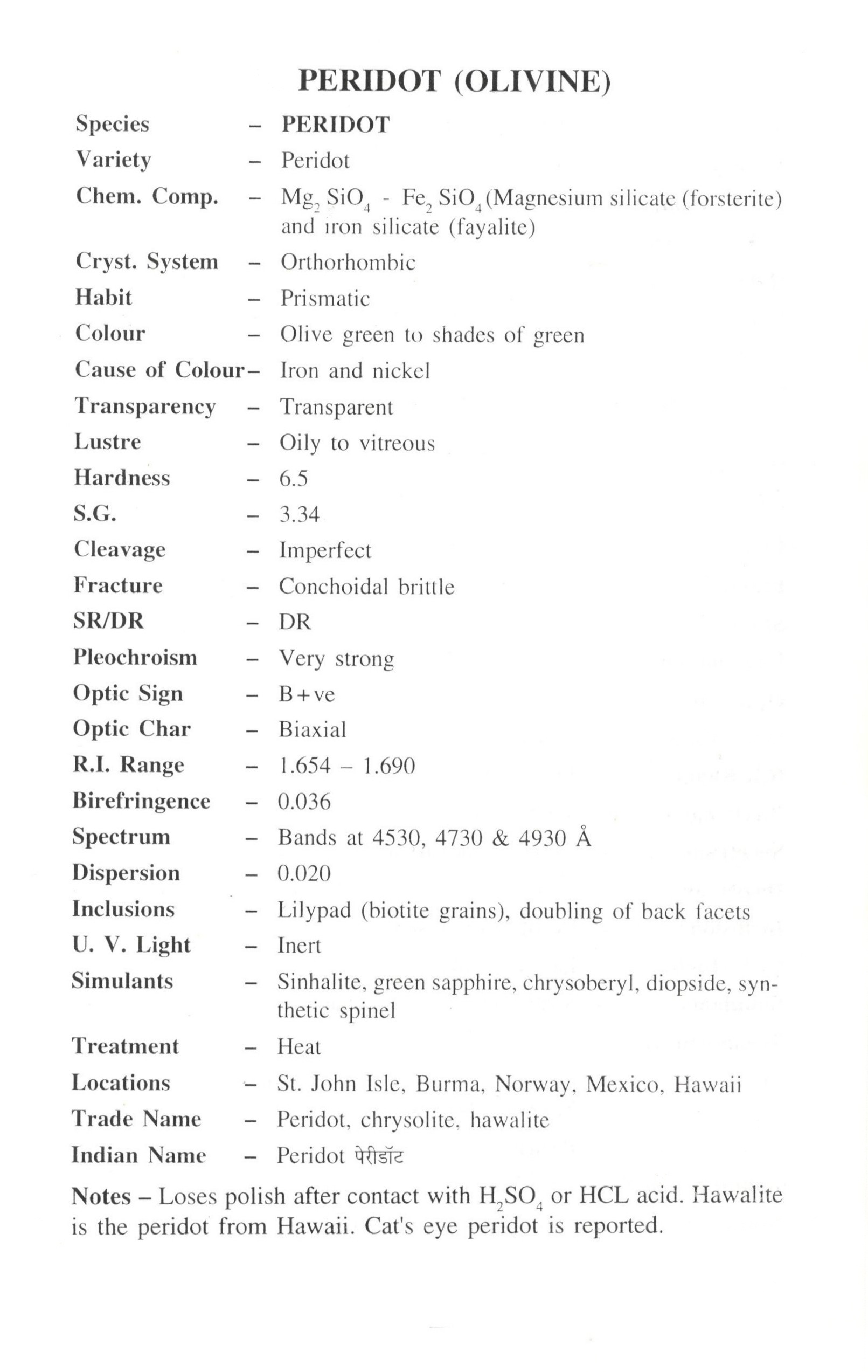 Peridot (known as Zabarjad/जबरज़ाद in Hindi), a gem-quality magnesium iron silicate, is one of the few gemstones that occur in only one color an olive-green.
