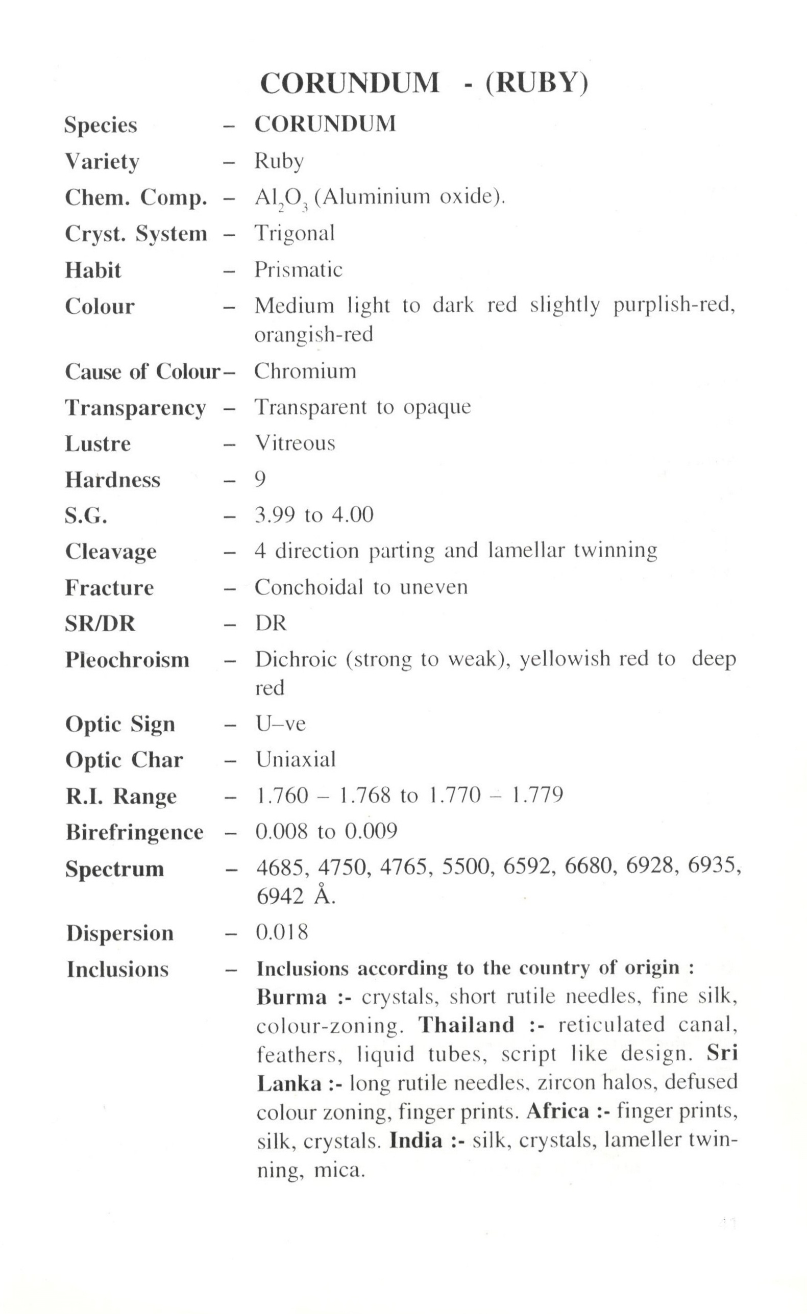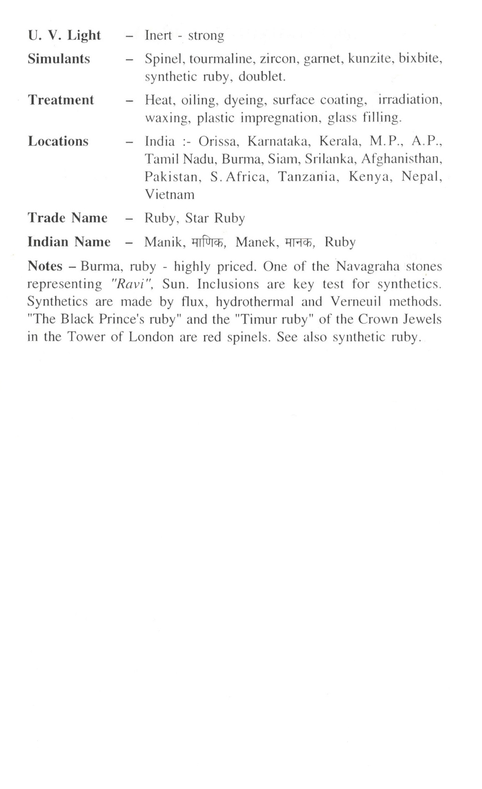 Ruby Stone Product Specifications :- Ruby is commonly known as Manik/Maanik/Maneek/Surya/Manak is basically a corundum mineral species gemstone which comes in different colours such as Yellow, blue, red, purple, orange, and green. Colour variety in corundum is basically due to the presence of elements such as iron, titanium, chromium, copper or magnesium Ruby Product Properties:- Chemical composition:- Aluminum Oxide (Al2O3) Crystal System :- Tri-gonal Crystal Habit:- Prismatic Hardness:-9 on Moh’s scale Specific Gravity:-3.99 – 4.00 Refractive Index:-1.760 – 1.768 to 1.770 – 1.779