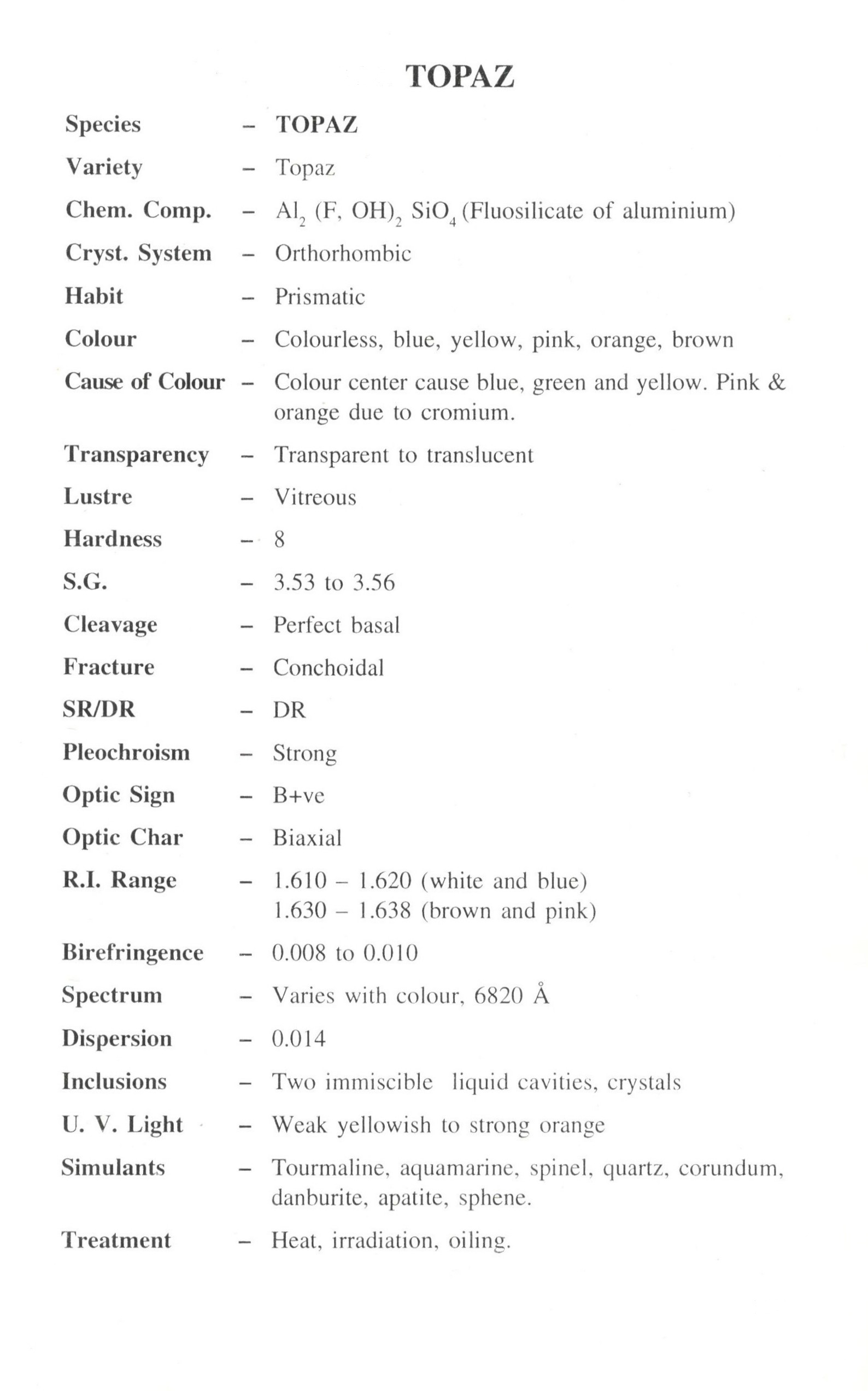 Chemical composition :- Al2(F,OH)2 SiO4 (Fluosilicate of aluminium)